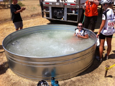 The organizers provide frequent rest stops and between them they serve up 15,000 gallons of fluids to competitors. One popular fluid option is pickle juice: